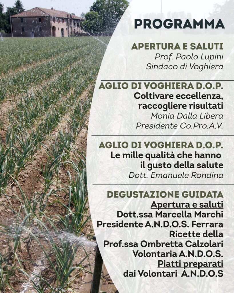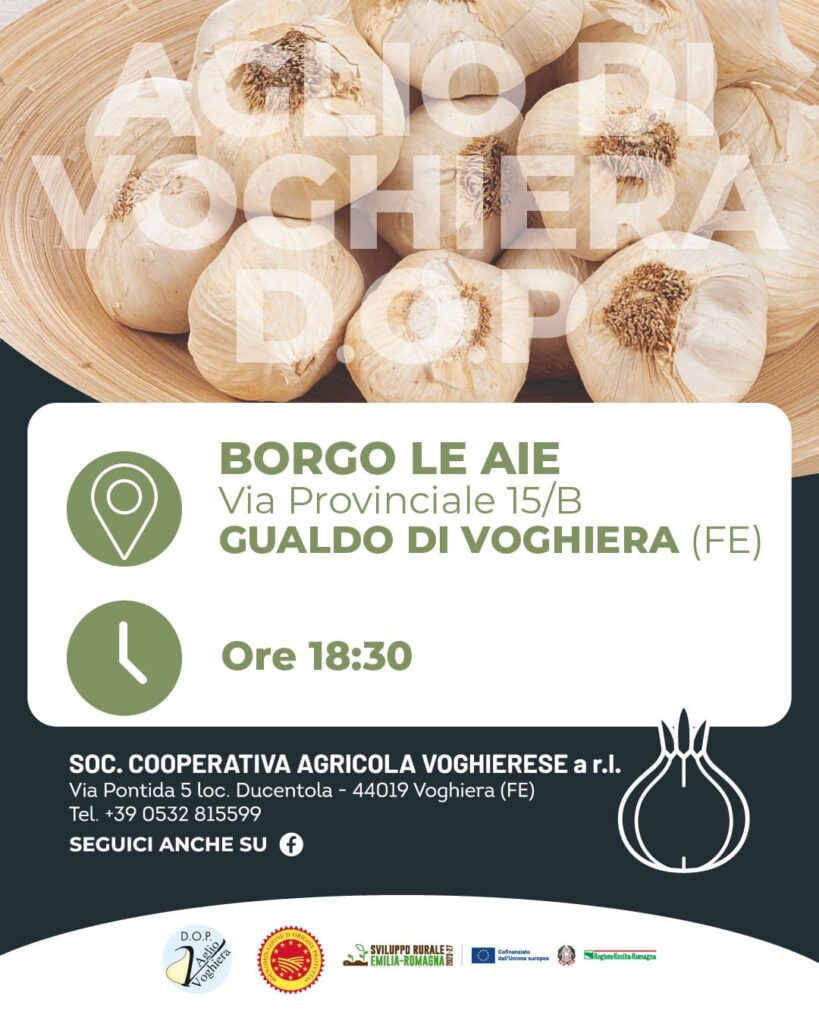 Le caratteristiche dell’Aglio di Voghiera derivano dal forte legame con il territorio e l’ambiente di produzione. Le caratteristiche tipiche del prodotto: bulbo rotondeggiante regolare, costituito da bulbilli uniti in forma compatta, profumo intenso, sono da attribuire ai terreni limoso-argillosi in cui viene coltivato. Tra i fattori pedoclimatici, che contribuiscono a rendere speciale l’aglio di Voghiera, rientra certamente anche il clima che è quello tipico della Pianura Padana Ferrarese. La composizione chimica è un perfetto equilibrio tra enzimi, vitamine, sali minerali e flavonoidi che conferiscono una specifica particolarità al prodotto molto apprezzato da ristoratori e gourmet.